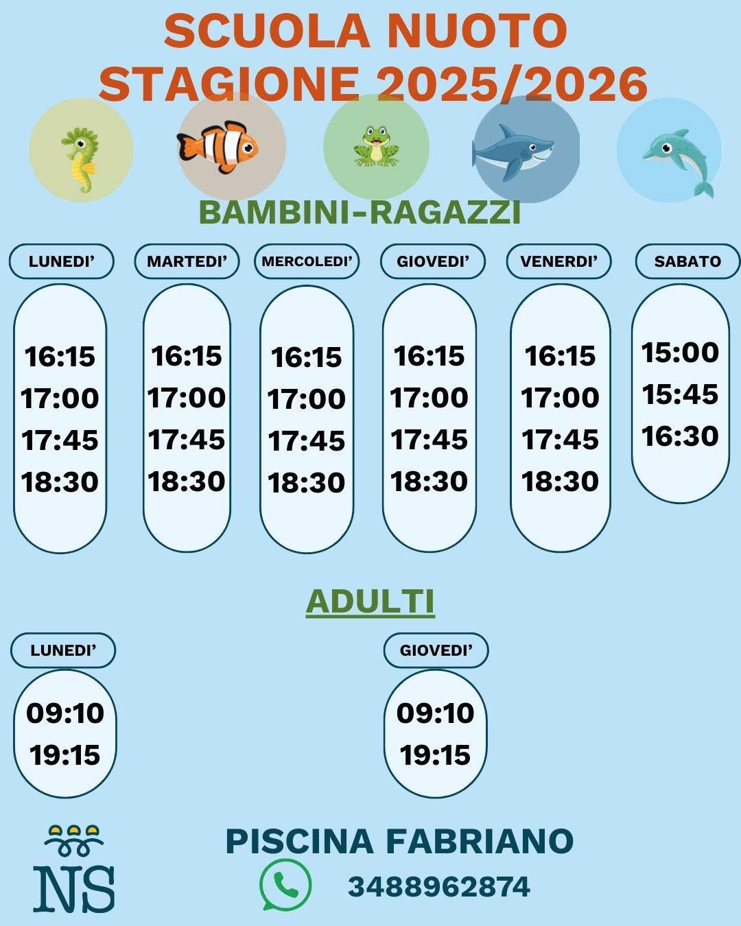 L’attività è presente dal lunedì al sabato nelle fasce orarie del mattino e sera per adulti, in quelle pomeridiane per i bimbi e ragazzi (3-16 anni)