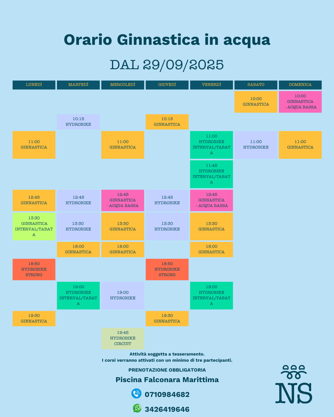 Su questa premessa fondiamo i programmi di allenamento, nei diversi metodi ginnico motori, in acqua e in palestra!