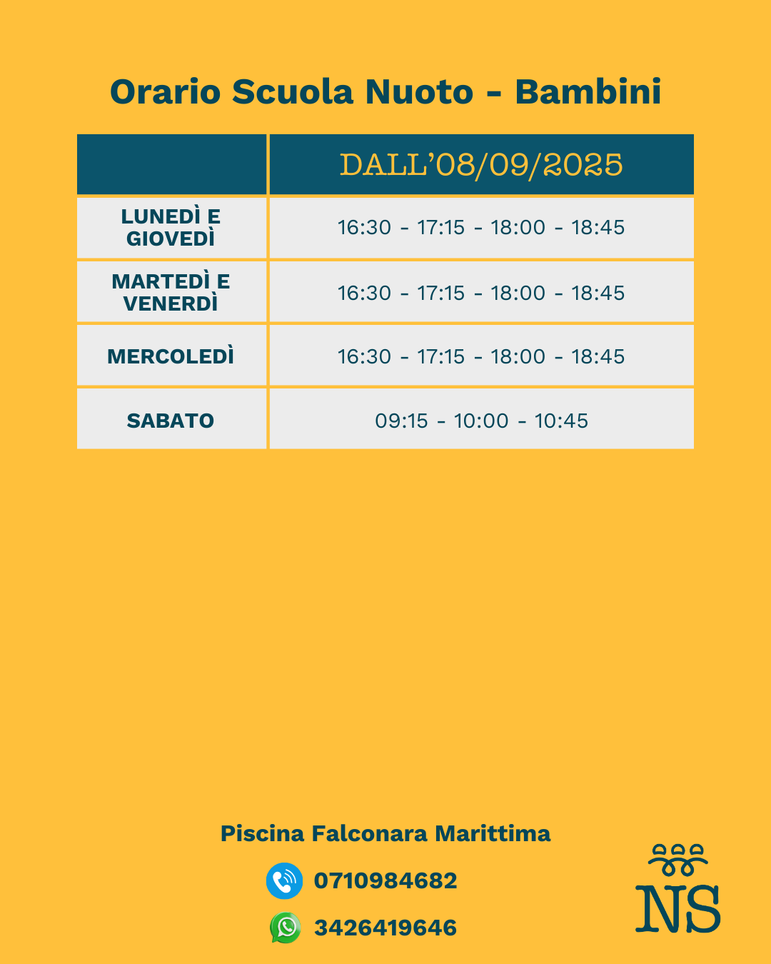 L’attività è presente dal lunedì al sabato nelle fasce orarie del mattino e sera per adulti, in quelle pomeridiane per i bimbi e ragazzi ( 3-16 anni)